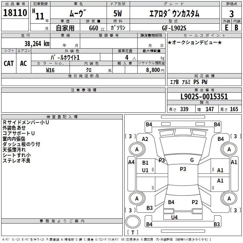 Daihatsu MOVE с аукциона Японии TAA Yokohama лот № 18110