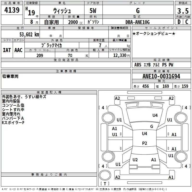 Toyota WISH с аукциона Японии TAA Hyogo лот № 4139
