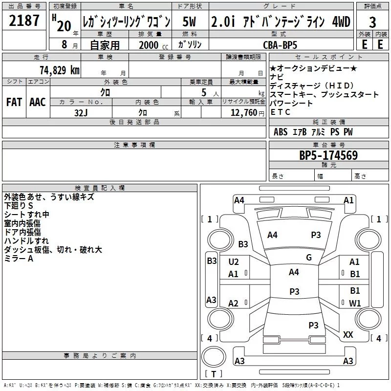 Subaru LEGACY с аукциона Японии TAA Hyogo лот № 2187