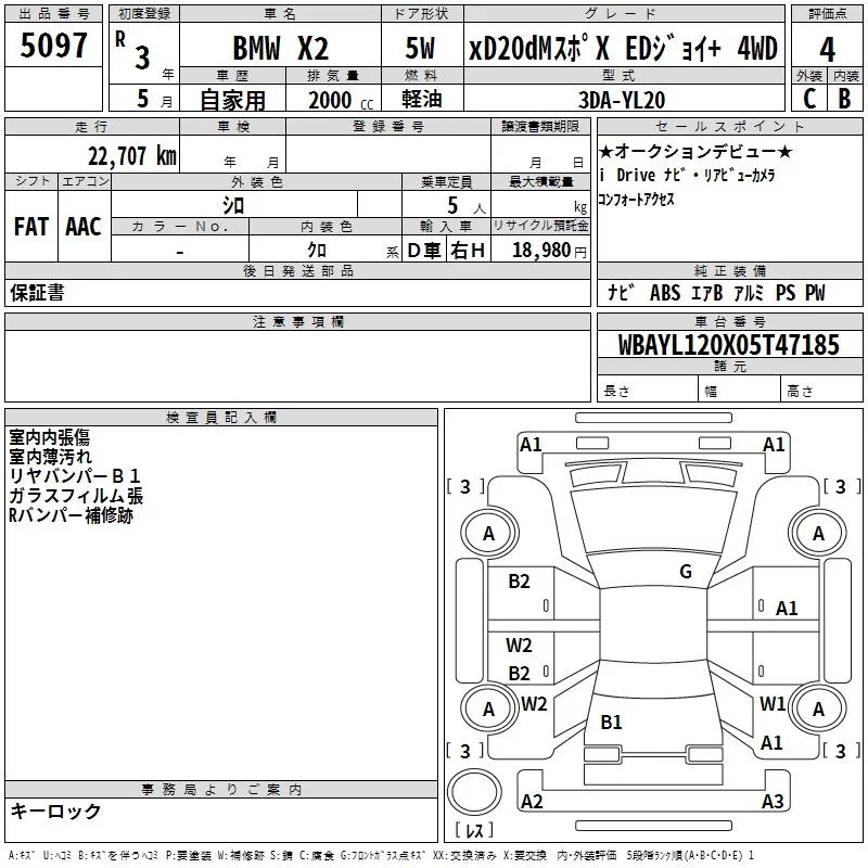 BMW X2 с аукциона Японии TAA Yokohama лот № 5097