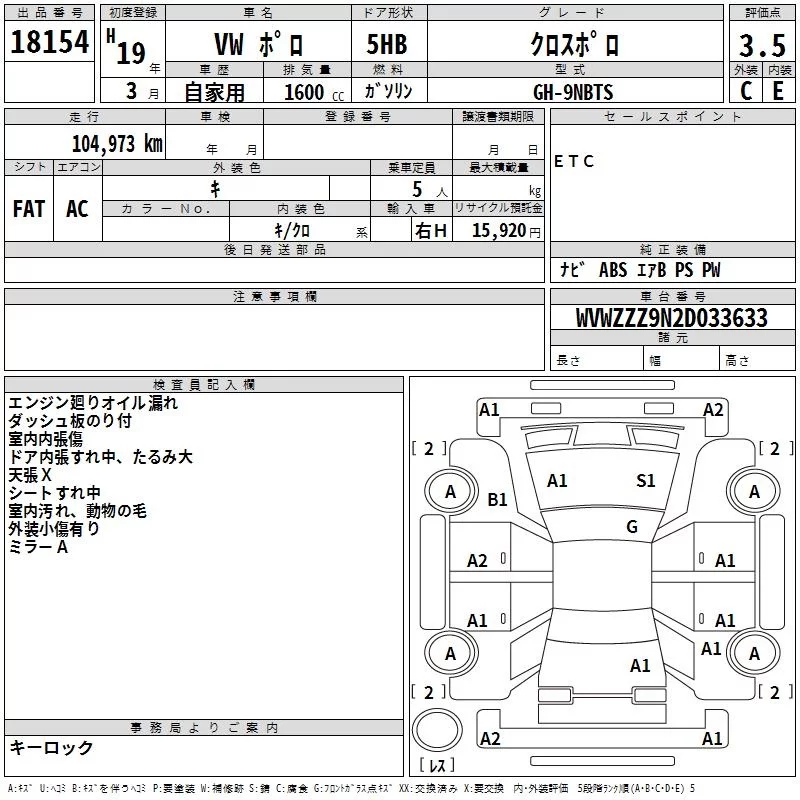 Volkswagen CROSS POLO с аукциона Японии TAA Yokohama лот № 18154