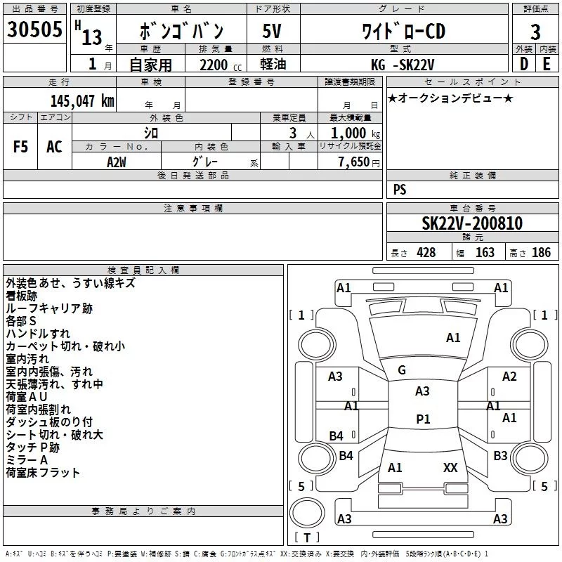 Mazda BONGO VAN с аукциона Японии TAA Hyogo лот № 30505