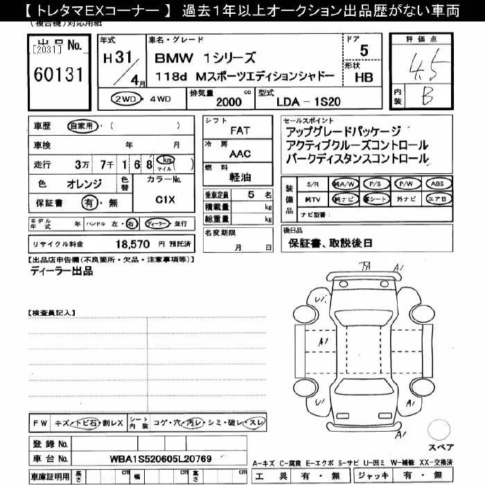 BMW 1-Series с аукциона Японии JU Gifu лот № 60131