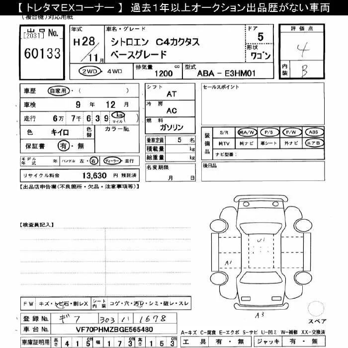 Citroen C4 с аукциона Японии JU Gifu лот № 60133