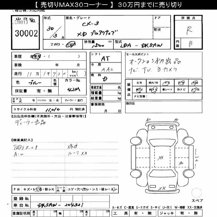 Mazda CX-3 с аукциона Японии JU Gifu лот № 30002