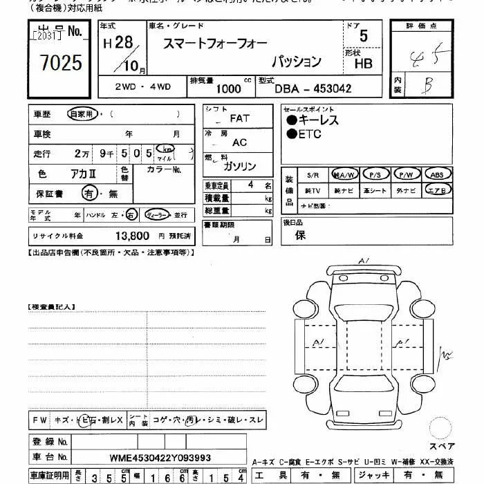Smart FORFOUR с аукциона Японии JU Gifu лот № 7025
