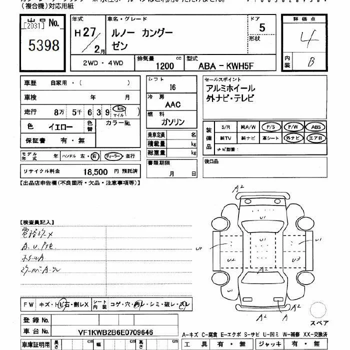 Renault KANGOO с аукциона Японии JU Gifu лот № 5398
