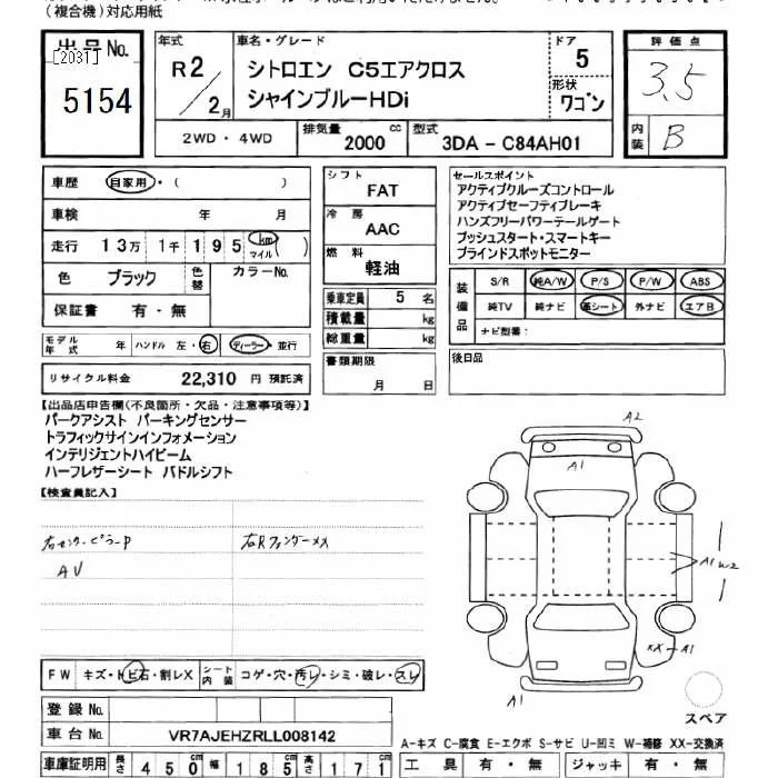 Citroen C5 с аукциона Японии JU Gifu лот № 5154