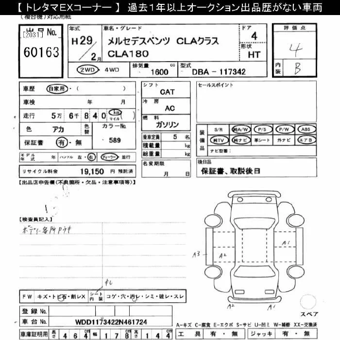 Mercedes-Benz CLA CLASS с аукциона Японии JU Gifu лот № 60163
