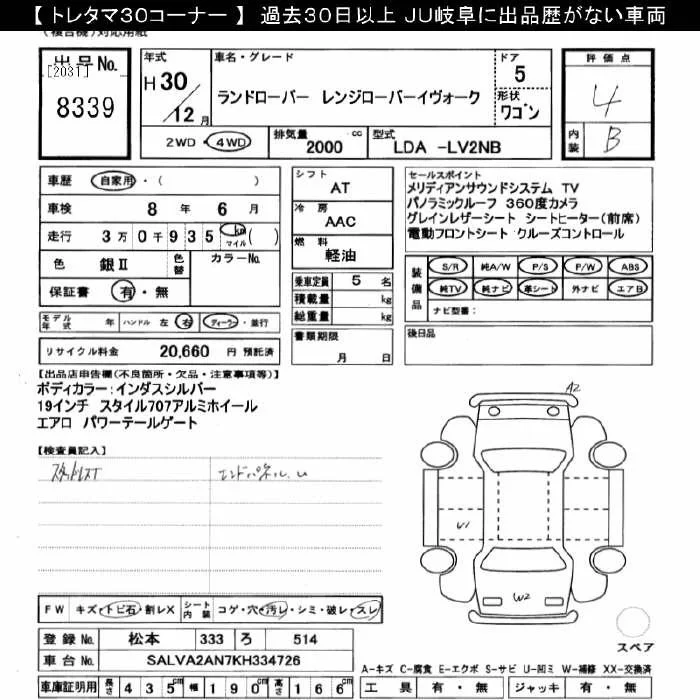 Rover RANGE ROVER с аукциона Японии JU Gifu лот № 8339