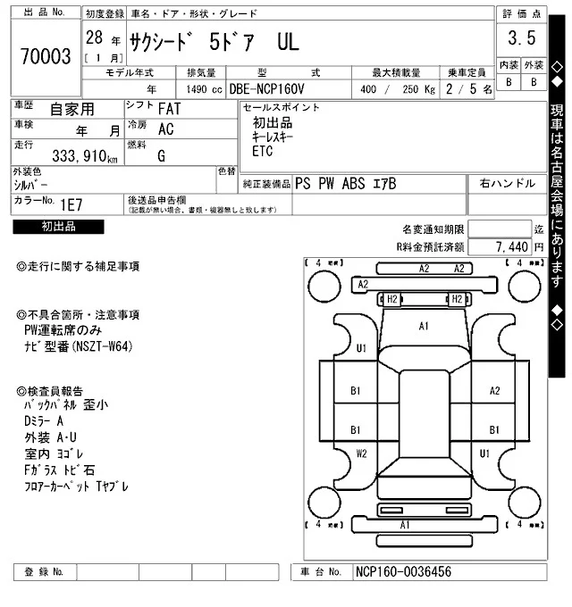 Toyota SUCCEED с аукциона Японии ARAI Oyama VT лот № 70003