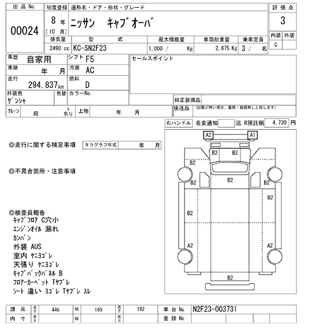 Nissan TRUCK с аукциона Японии ARAI Oyama VT лот № 24