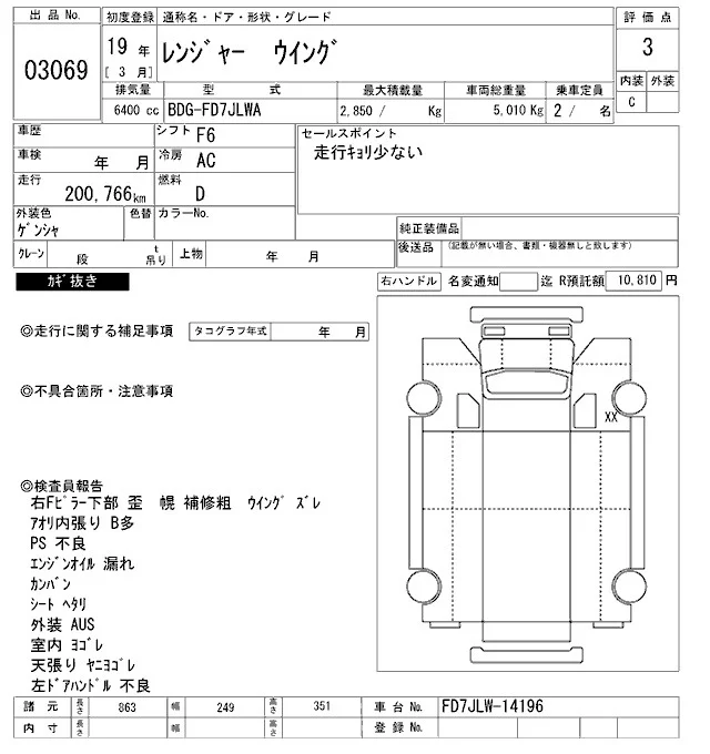 Hino RANGER с аукциона Японии ARAI Oyama VT лот № 3069