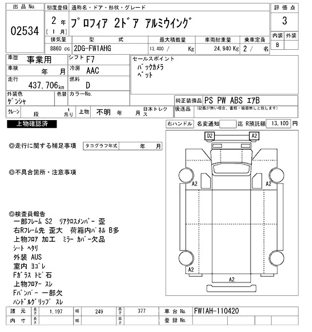 Hino PROFIA с аукциона Японии ARAI Oyama VT лот № 2534