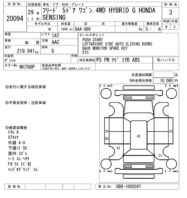 Honda FREED с аукциона Японии ARAI Oyama VT лот № 20094