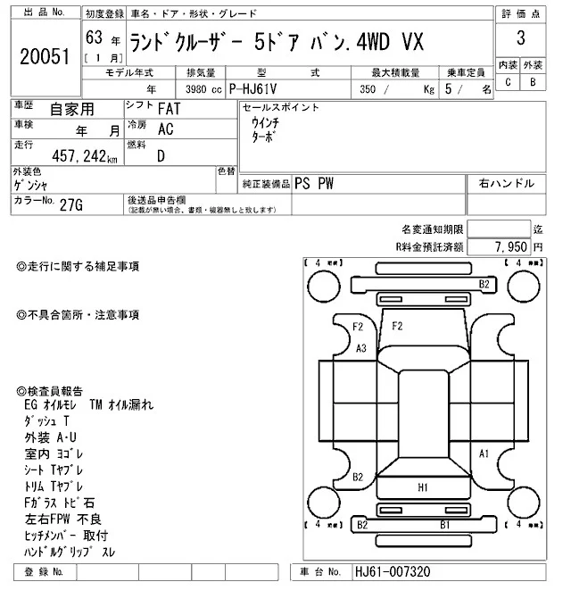 Toyota LAND CRUISER с аукциона Японии ARAI Oyama VT лот № 20051