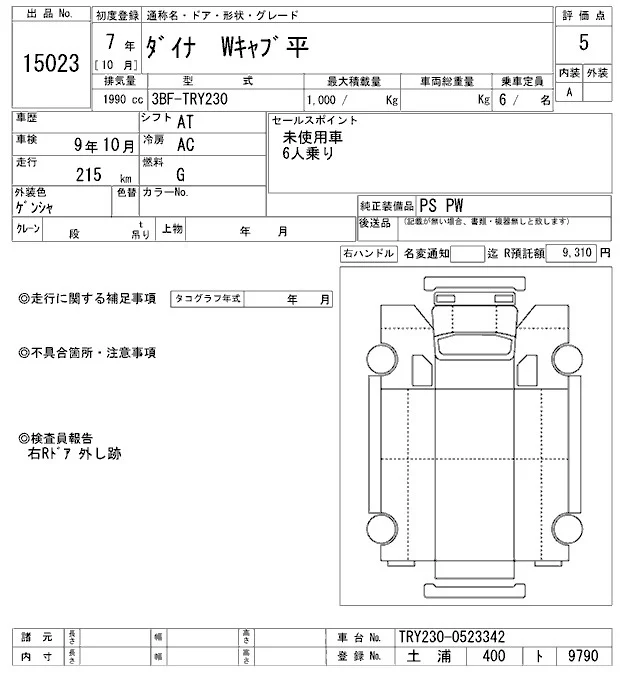 Toyota DYNA с аукциона Японии ARAI Oyama VT лот № 15023