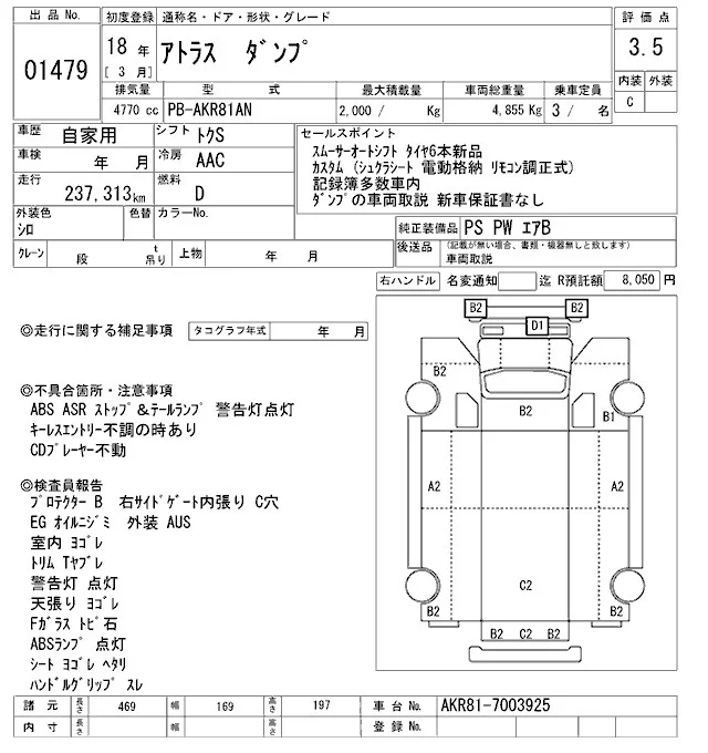 Nissan ATLAS с аукциона Японии ARAI Oyama VT лот № 1479