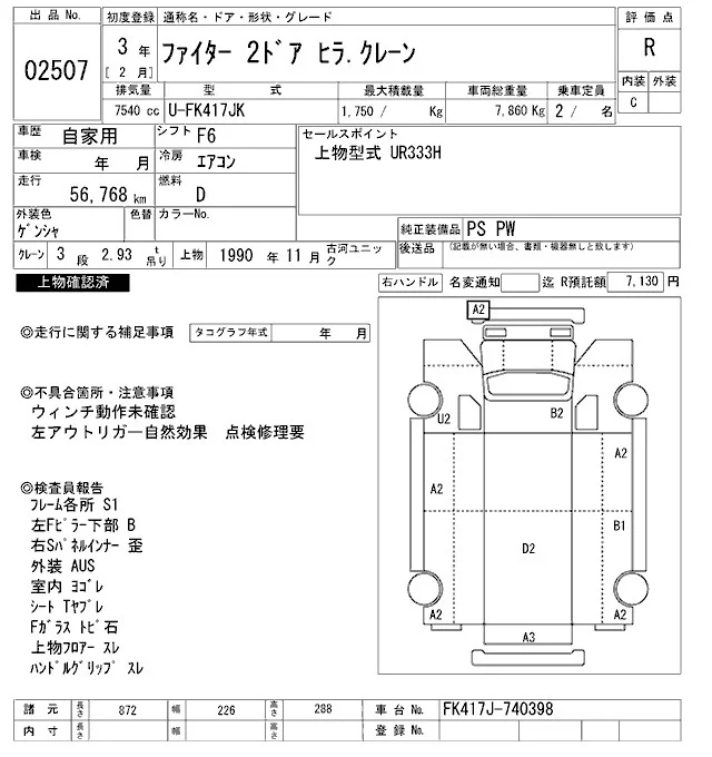 Mitsubishi FUSO FIGHTER с аукциона Японии ARAI Oyama VT лот № 2507
