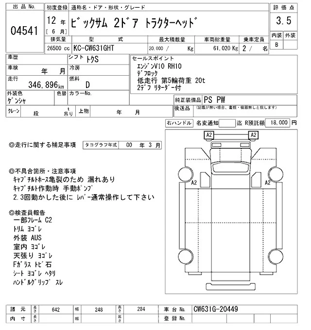 Nissan BIGTHUMB с аукциона Японии ARAI Oyama VT лот № 4541