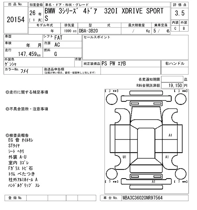 BMW 3-Series с аукциона Японии ARAI Oyama VT лот № 20154