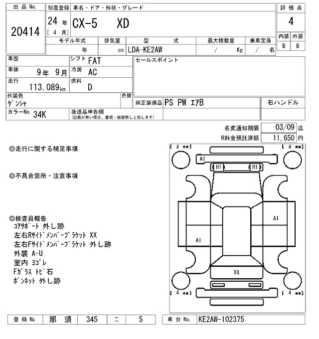 Mazda CX-5 с аукциона Японии ARAI Oyama VT лот № 20414