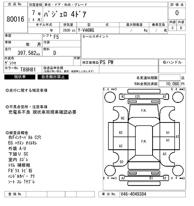 Mitsubishi PAJERO с аукциона Японии ARAI Oyama VT лот № 80016