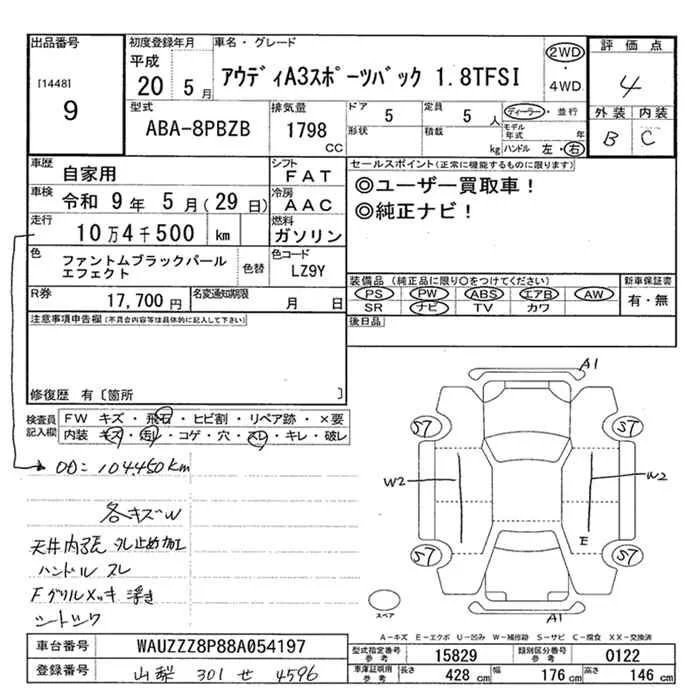Audi A3 с аукциона Японии JU Yamanashi лот № 9