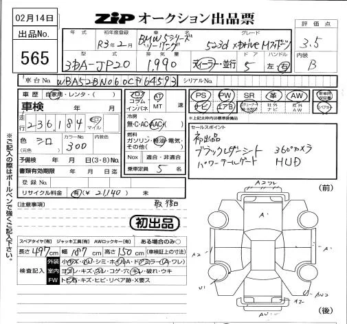 BMW 5-Series с аукциона Японии ZIP Tokyo лот № 565