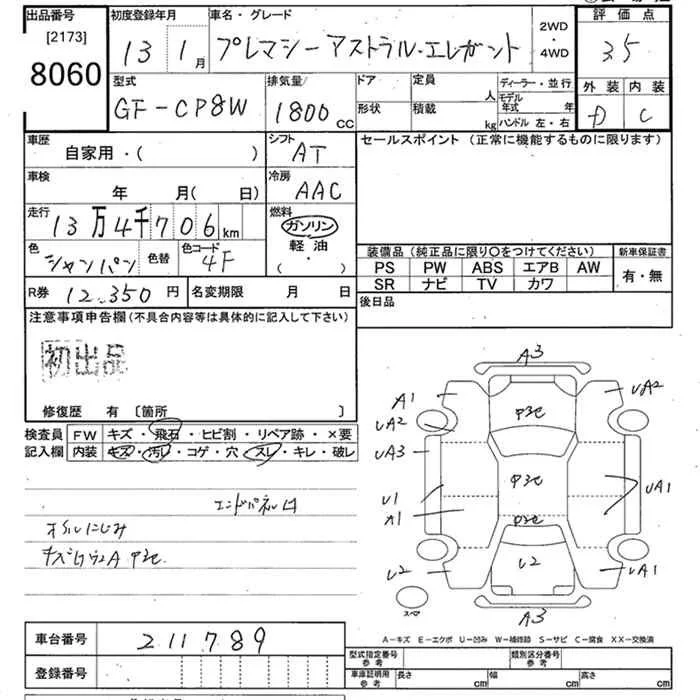 Mazda PREMACY с аукциона Японии JU Tokyo лот № 8060
