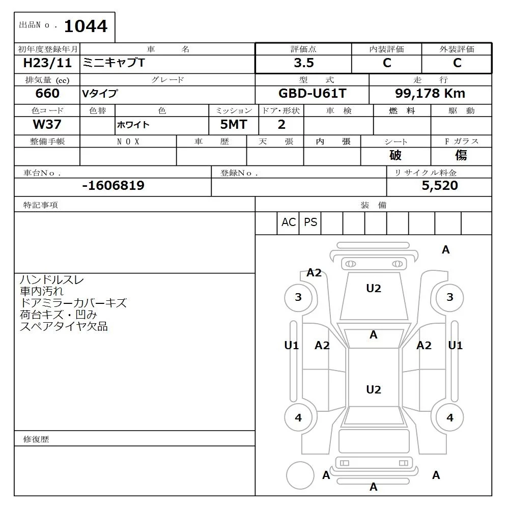 Mitsubishi MINICAB TRUCK с аукциона Японии NISSAN Osaka лот № 1044