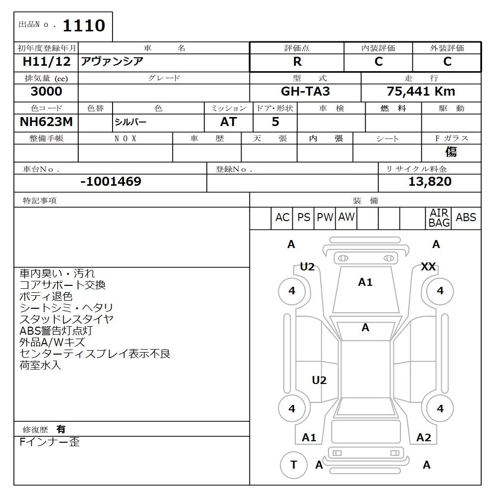 Honda AVANCIER с аукциона Японии NISSAN Osaka лот № 1110