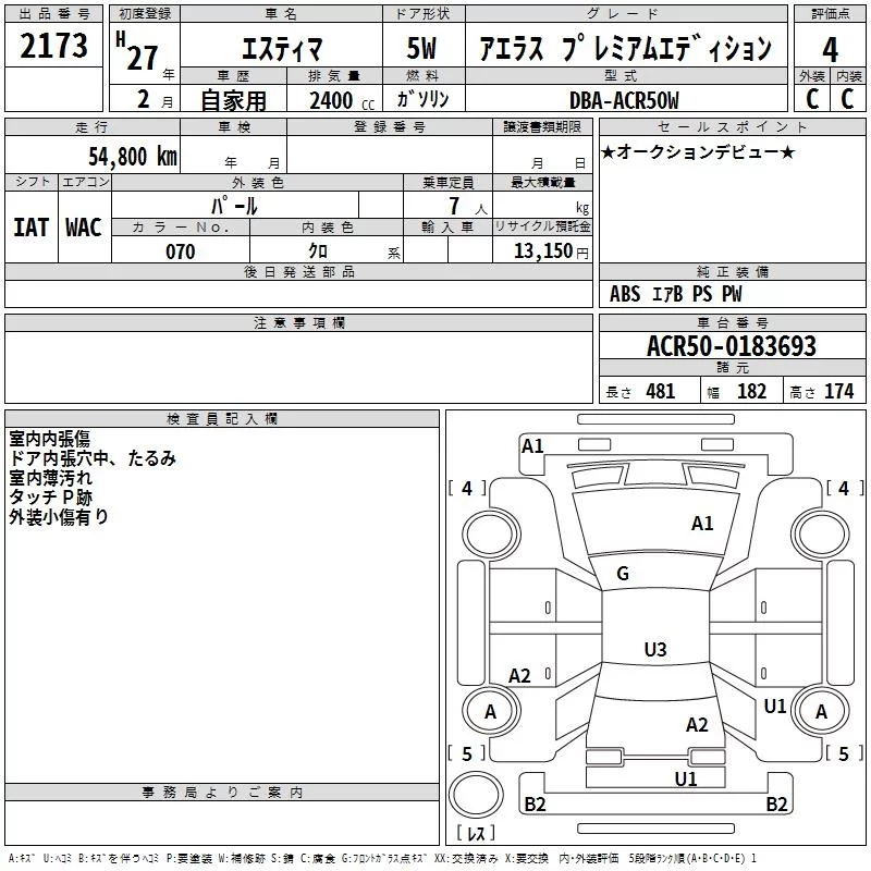 Toyota ESTIMA с аукциона Японии TAA Kinki лот № 2173