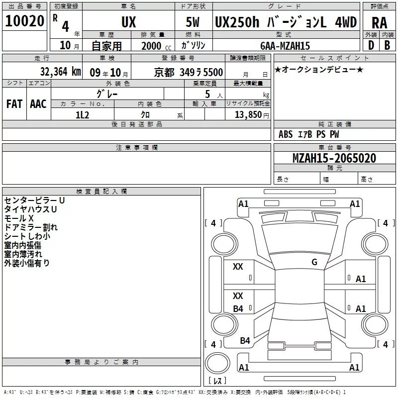 Lexus UX с аукциона Японии TAA Kinki лот № 10020