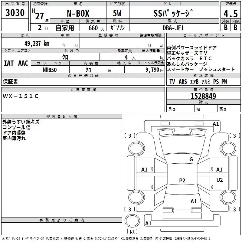 Honda N BOX с аукциона Японии TAA Kinki лот № 3030