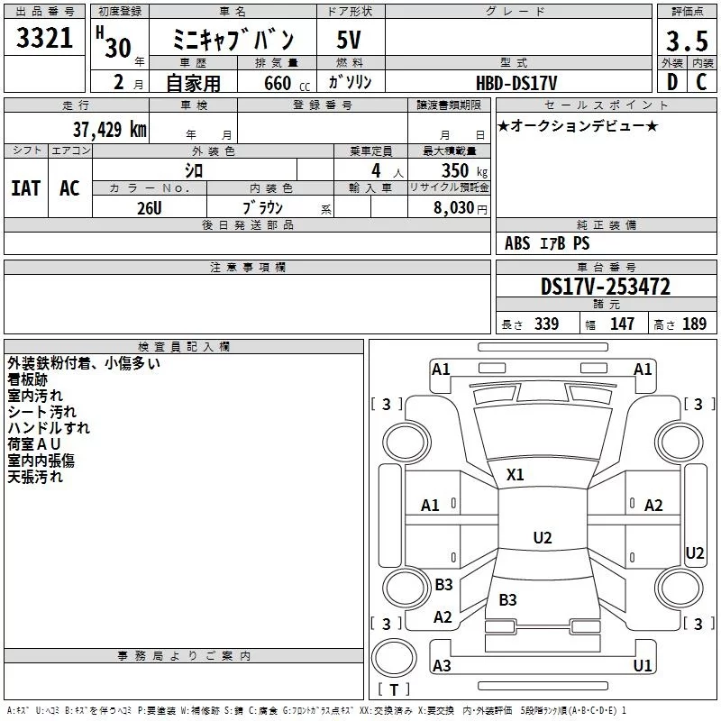 Mitsubishi MINICAB VAN с аукциона Японии TAA Kinki лот № 3321