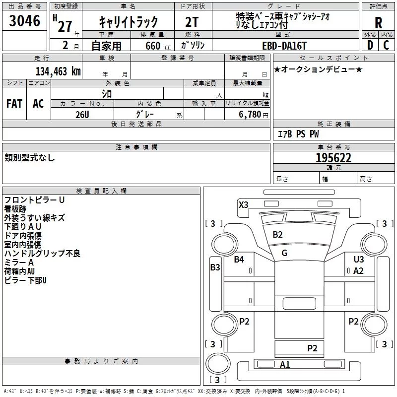 Suzuki CARRY TRUCK с аукциона Японии TAA Kinki лот № 3046