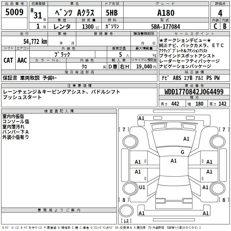 Mercedes-Benz A CLASS с аукциона Японии TAA Kinki лот № 5009