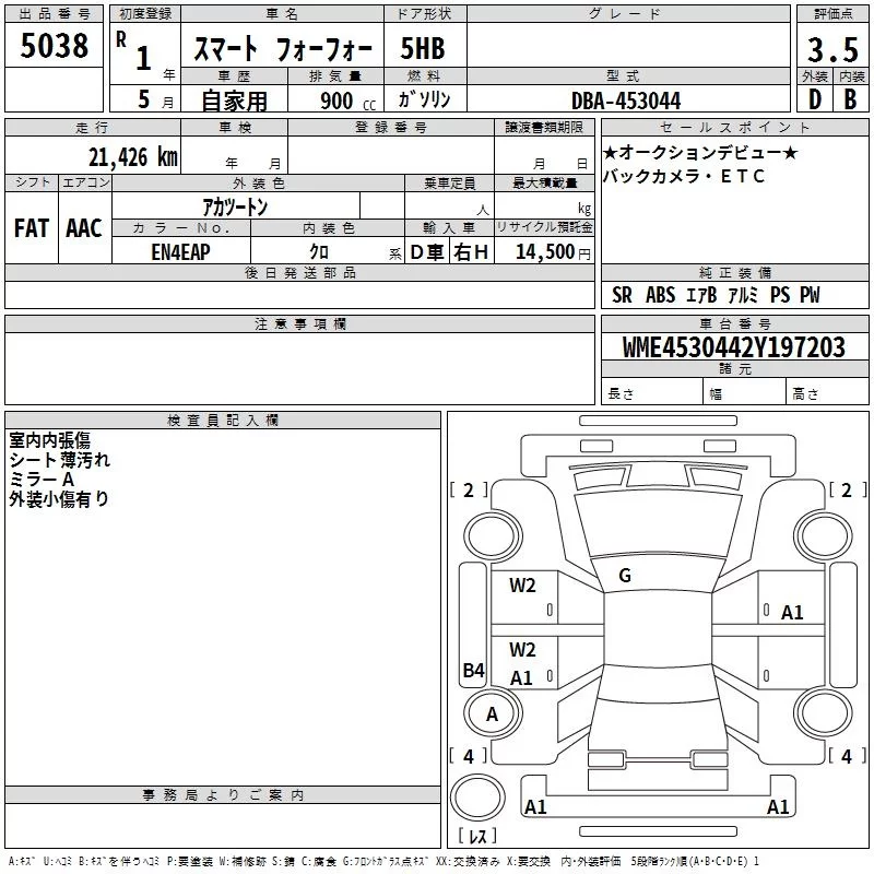 Smart FORFOUR с аукциона Японии TAA Kinki лот № 5038