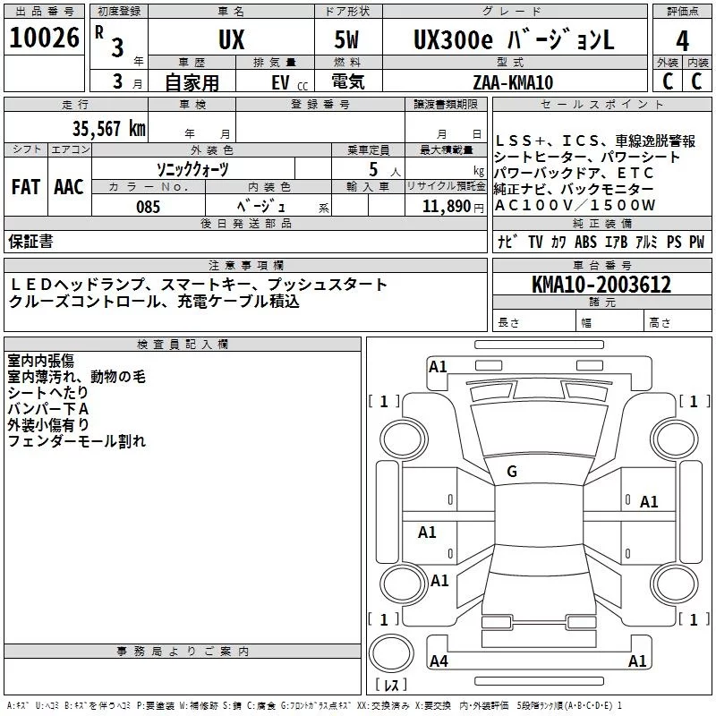 Lexus UX с аукциона Японии TAA Kinki лот № 10026