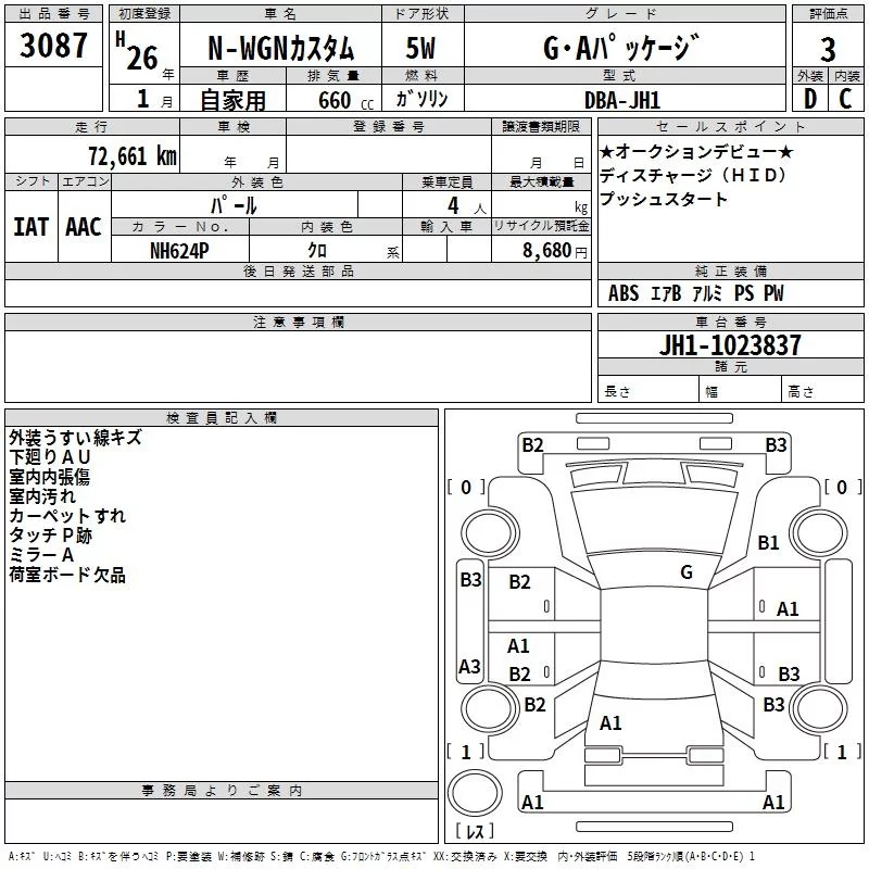 Honda N WGN с аукциона Японии TAA Kinki лот № 3087