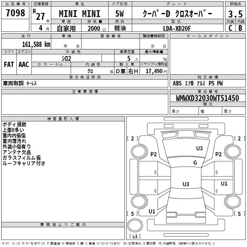 BMW MINI с аукциона Японии TAA Kinki лот № 7098