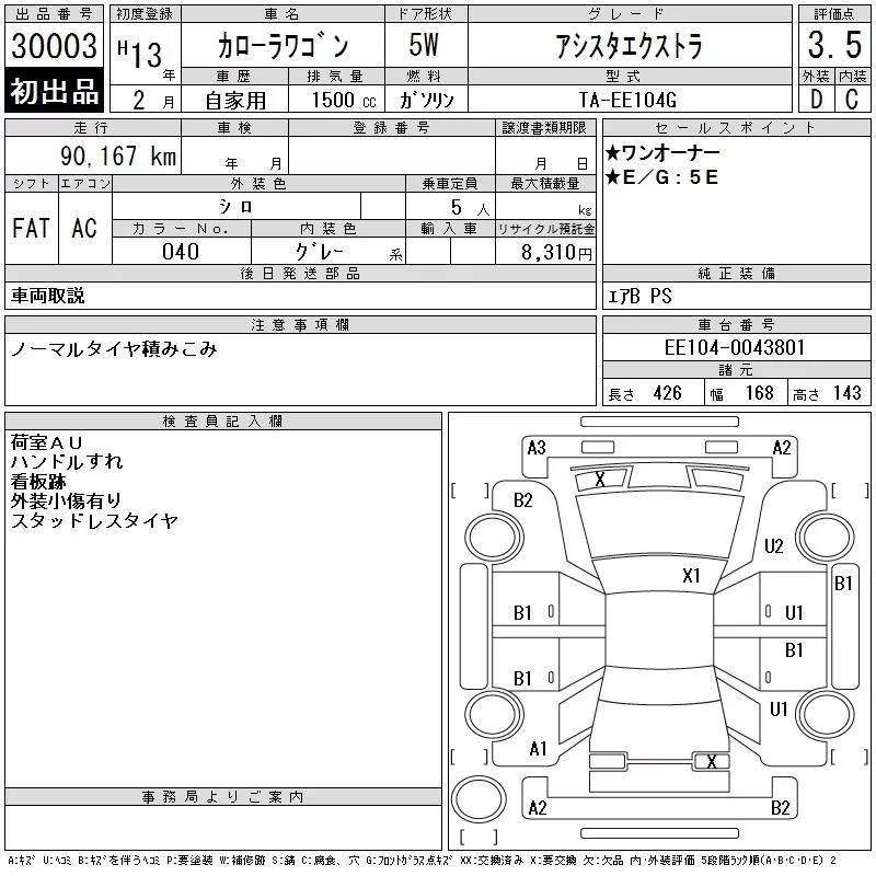 Toyota COROLLA TOURING WAGON с аукциона Японии CAA Gifu лот № 30003