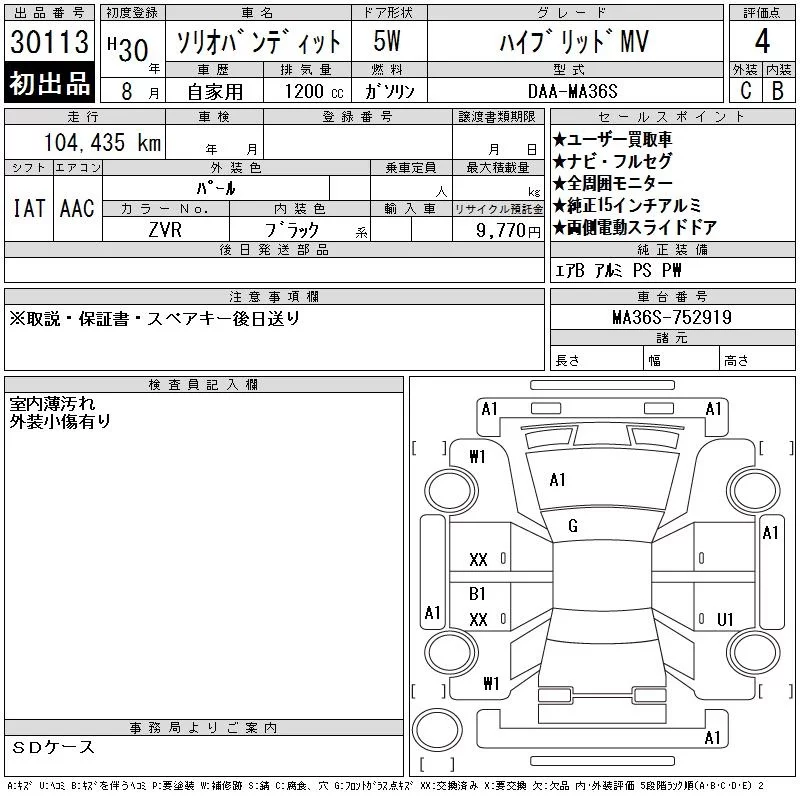 Suzuki SOLIO с аукциона Японии CAA Gifu лот № 30113