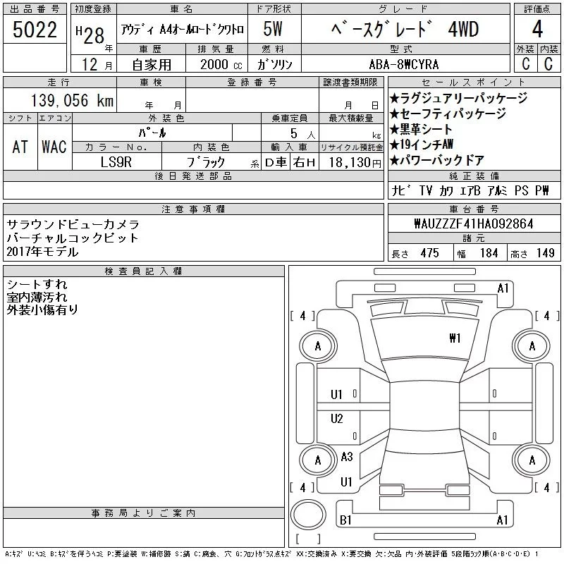 Audi A4 с аукциона Японии CAA Gifu лот № 5022