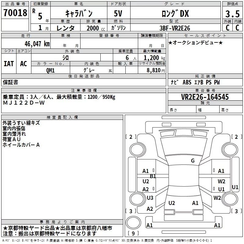 Nissan CARAVAN VAN с аукциона Японии TAA Kinki лот № 70018
