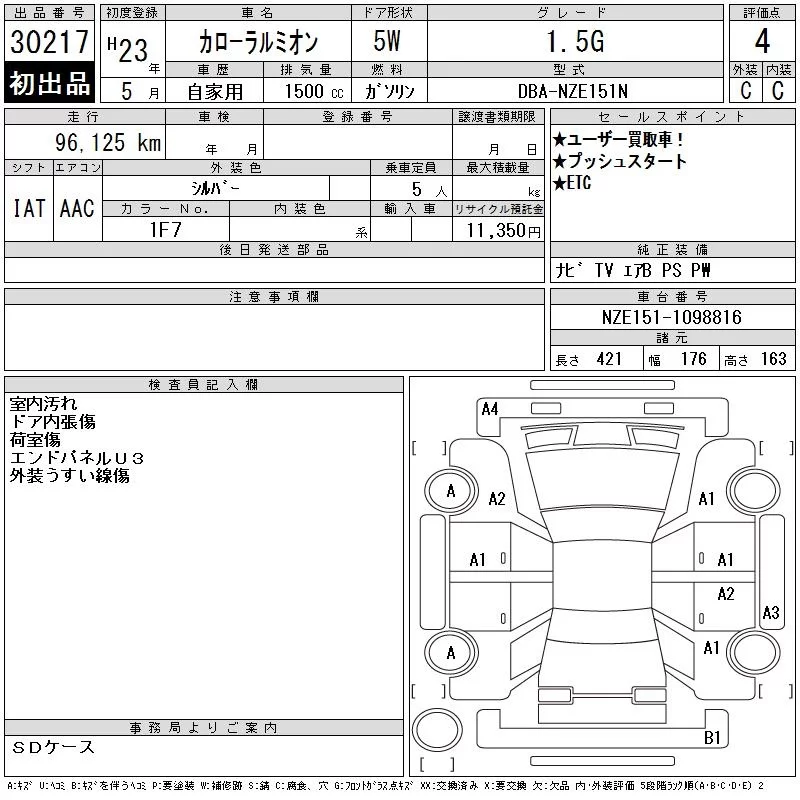 Toyota COROLLA RUMION с аукциона Японии CAA Gifu лот № 30217