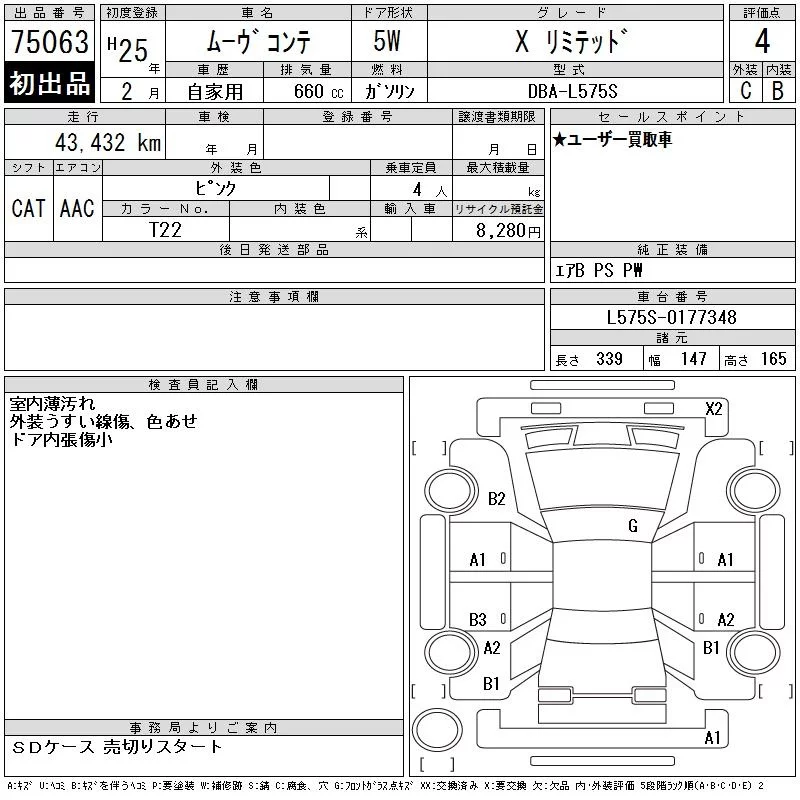 Daihatsu MOVE CONTE с аукциона Японии CAA Gifu лот № 75063