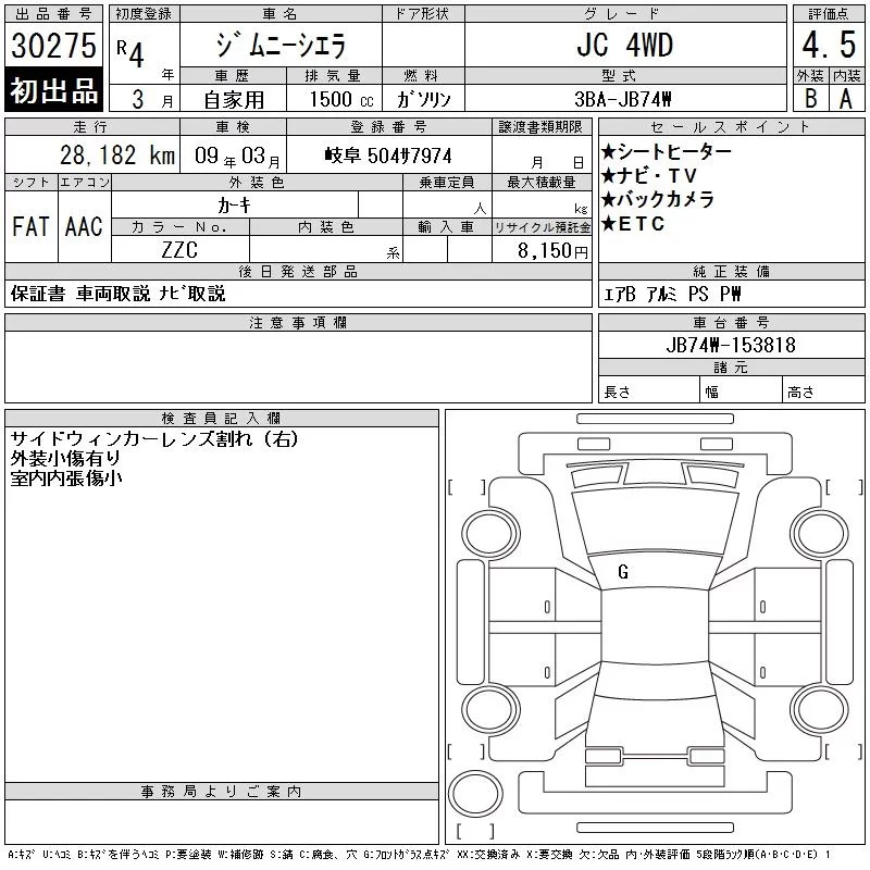 Suzuki JIMNY SIERRA с аукциона Японии CAA Gifu лот № 30275