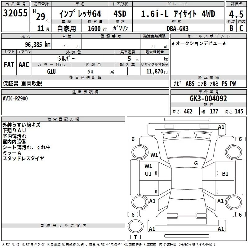 Subaru IMPREZA G4 с аукциона Японии TAA Kinki лот № 32055